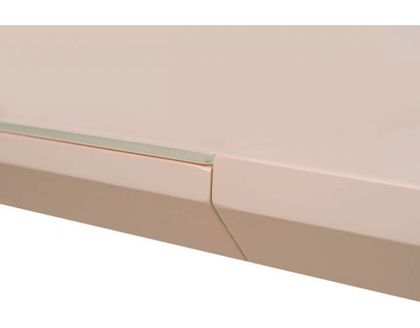 Особливість: Стільниця: вставка - бежевий МДФ + біле скло; колонна: бежеве МДФ; база: матова хромований метал