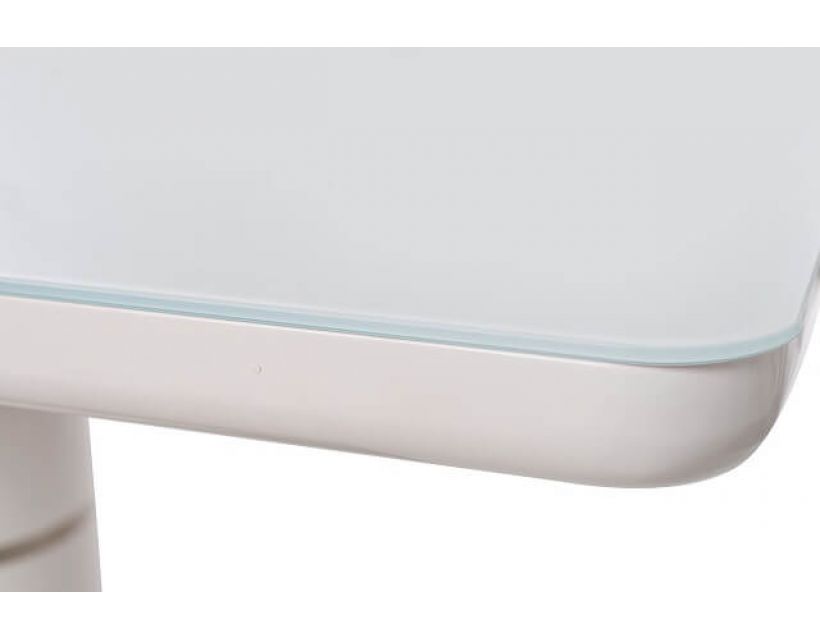 Особливість: Стільниця: вставка - білий МДФ + біле матове скло; колонна: білий МДФ; база: матова нержавіюча сталь
