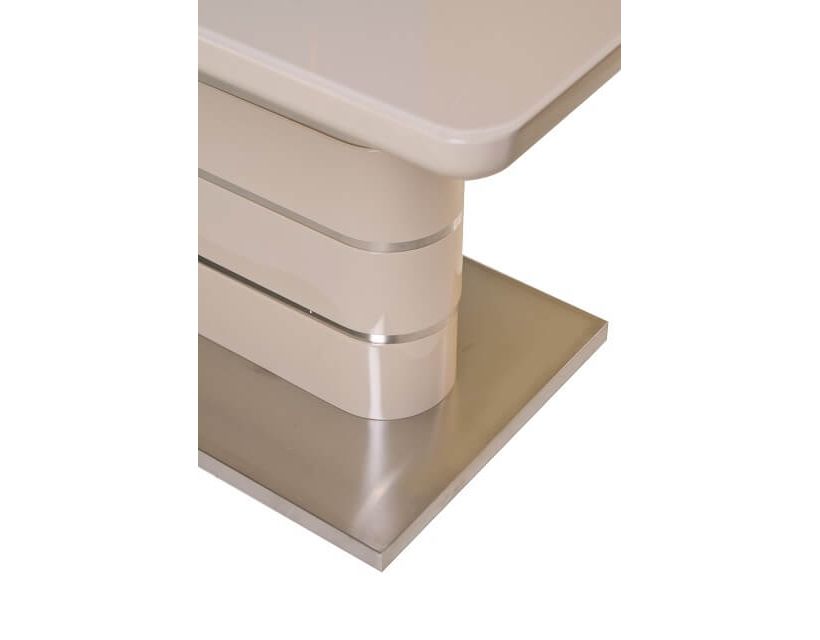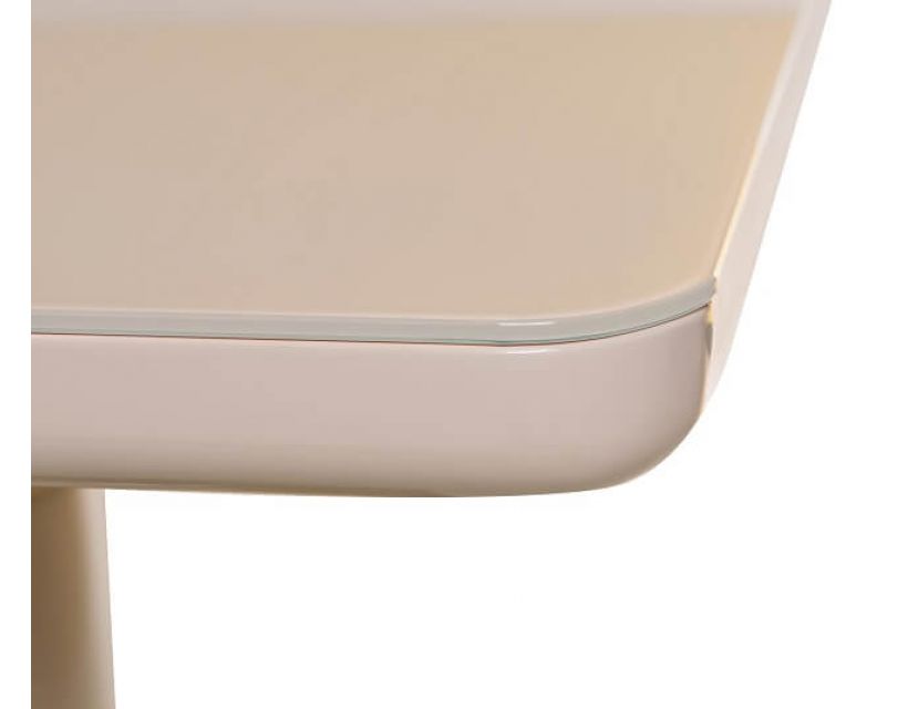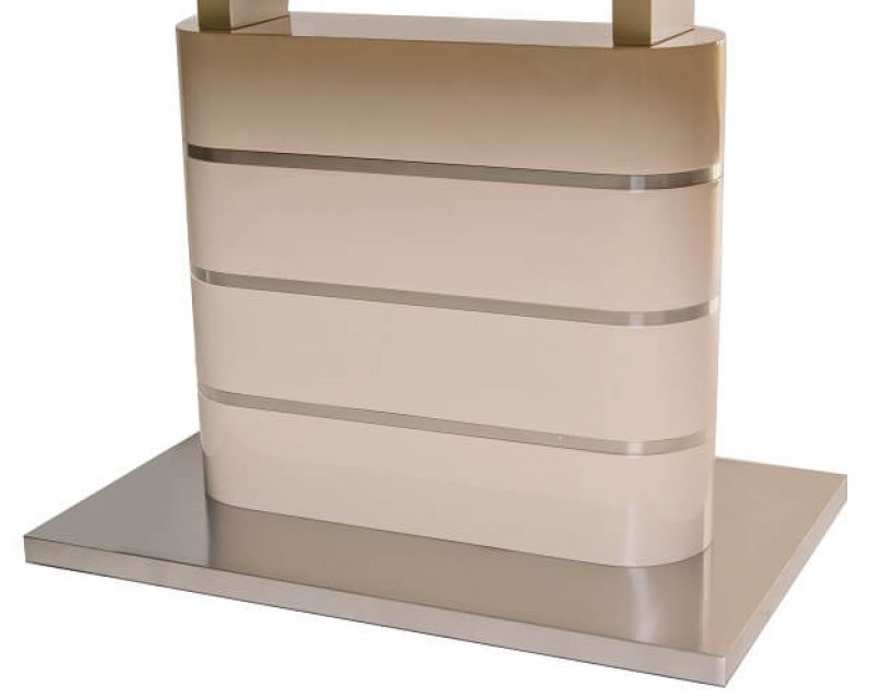 Особливість: Стільниця: вставка - бежевий МДФ + бежеве скло; колонна: бежевий МДФ; база: матова нержавіюча сталь
