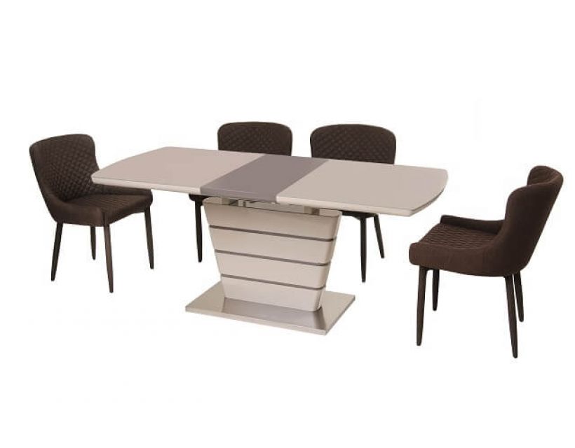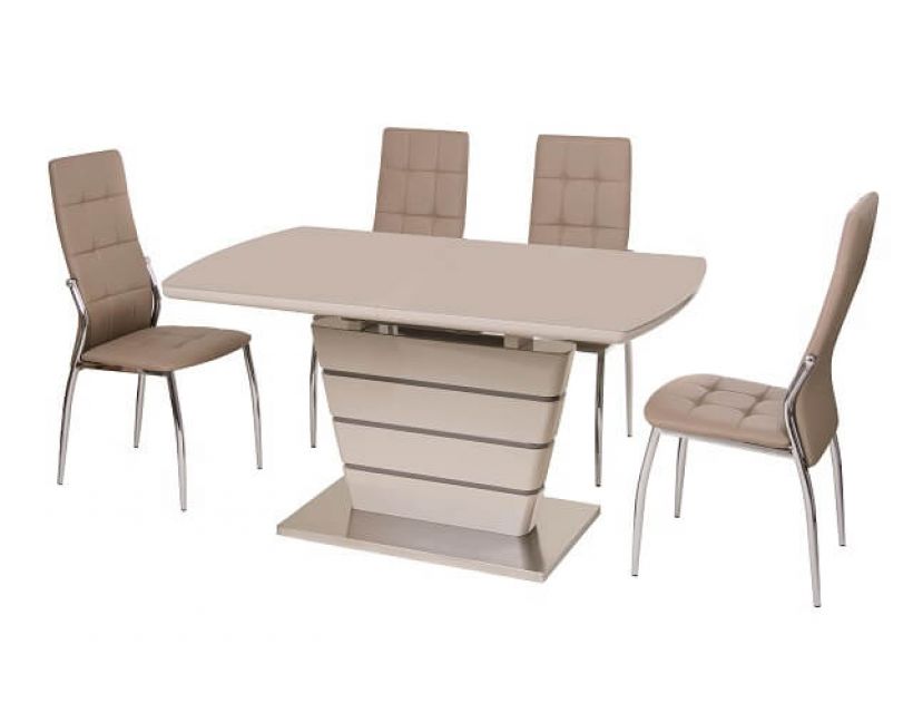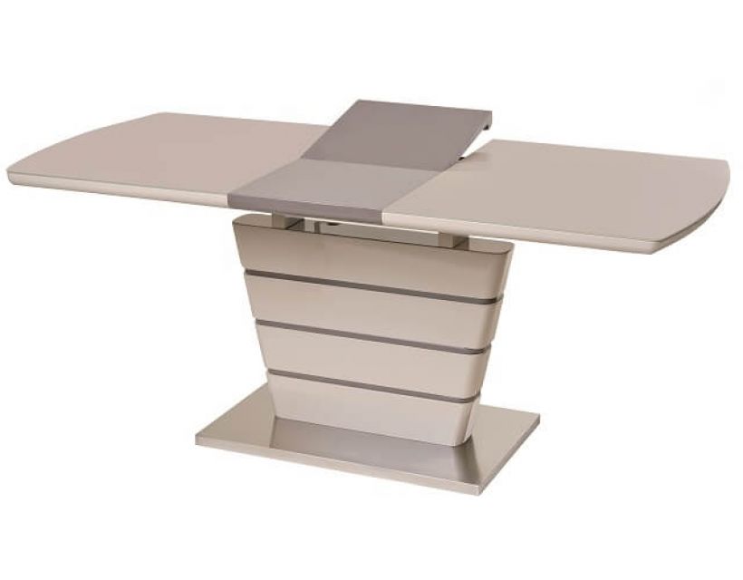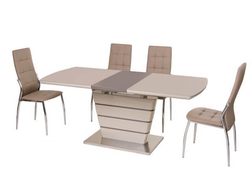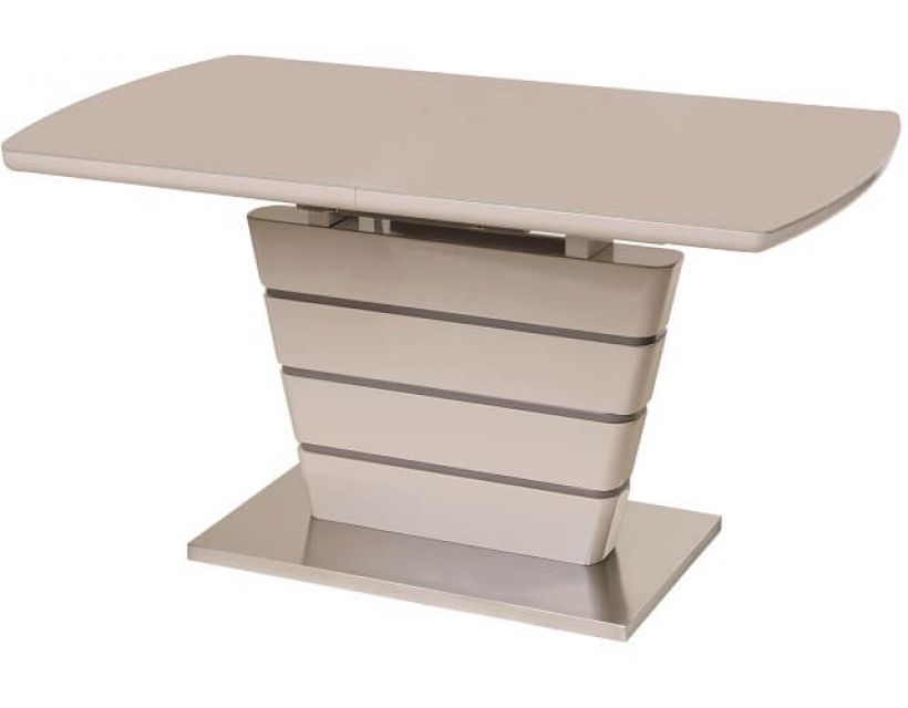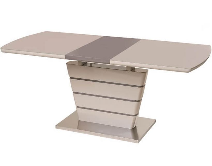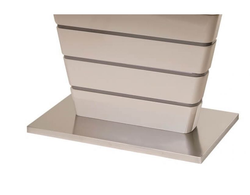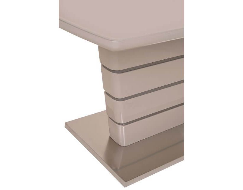 Особливість: Стільниця: вставка - лате МДФ + капучіно матове скло; колонна: капучіно + лате (смуги) МДФ; база: матова нержавіюча сталь