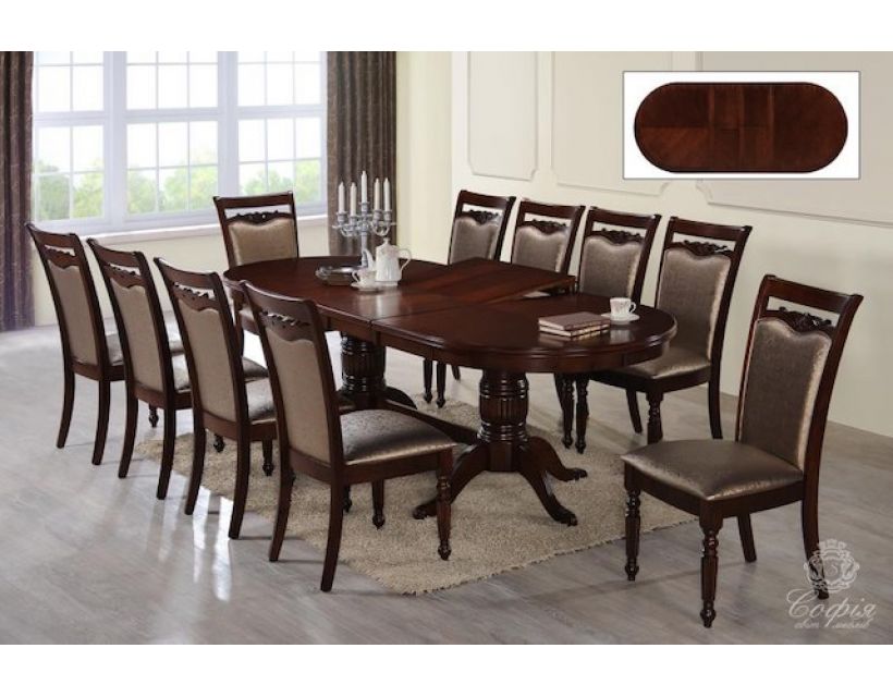 Розкладний овальний стіл Братіслава з масиву дерева та стільницею з МДФ на двох скріплених між собою ніжках в класичному стилі від виробника Софія