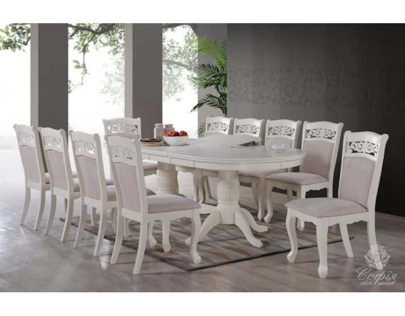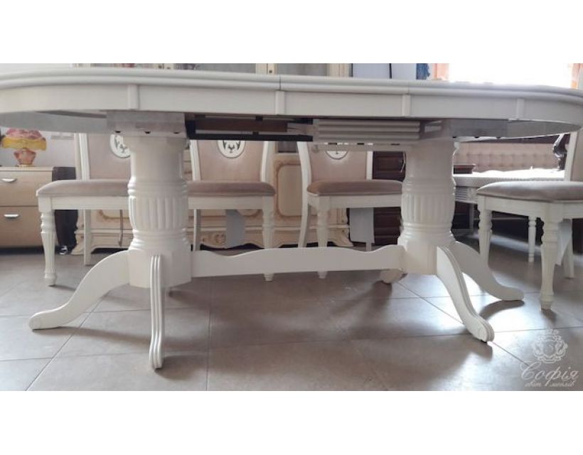 Розкладний овальний стіл Братіслава з масиву дерева та стільницею з МДФ на двох скріплених між собою ніжках в класичному стилі від виробника Софія