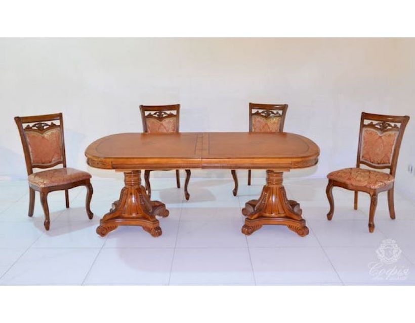 Кухонний розкладний овальний стіл Лондон на міцній опорі виготовлений з масиву дерева та стільницею з МДФ плити покритої натуральним шпоном в стилі модерн від виробника Софія