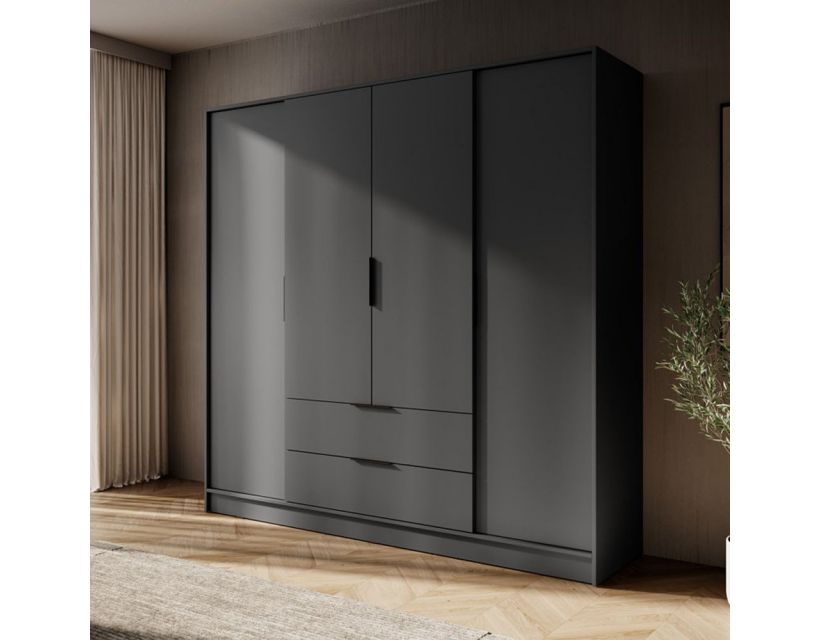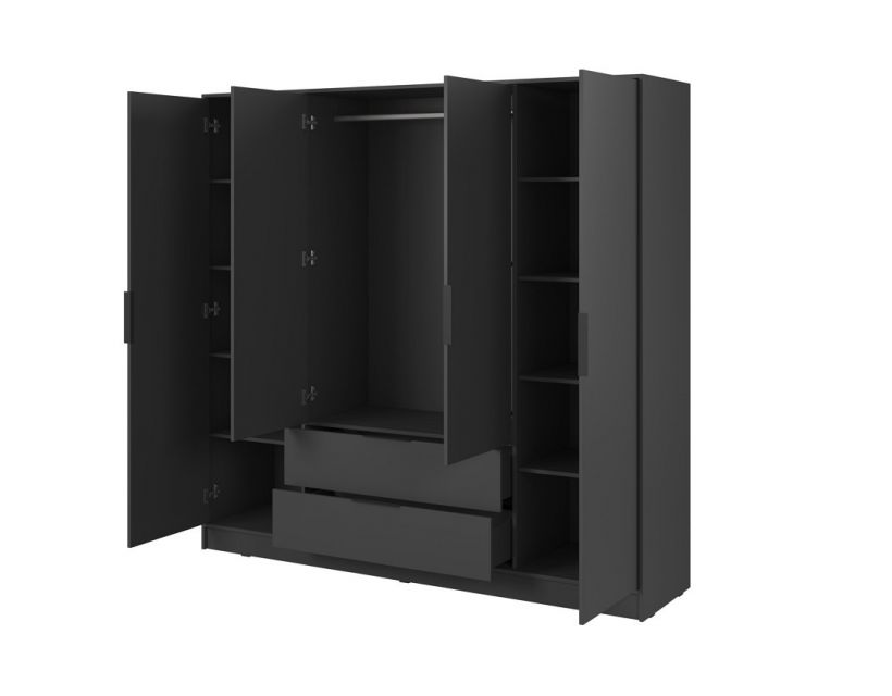 Шафа Келлі пропонує достатньо місця для організації вашого гардеробу. Чотири просторі відділення дозволяють зберігати одяг, взуття та аксесуари в порядку, щоб ви завжди могли швидко знайти все необхідне. Внутрішні полиці та штанги для вішалок забезпечують максимальну зручність у використанні, що робить ваш щоденний рутинний процес простішим та приємнішим.