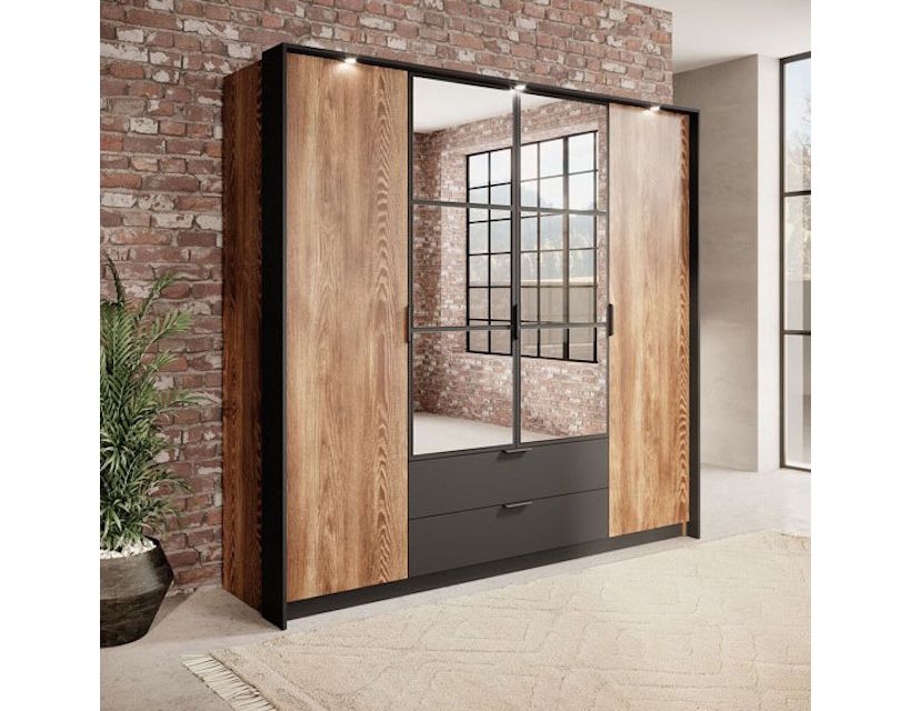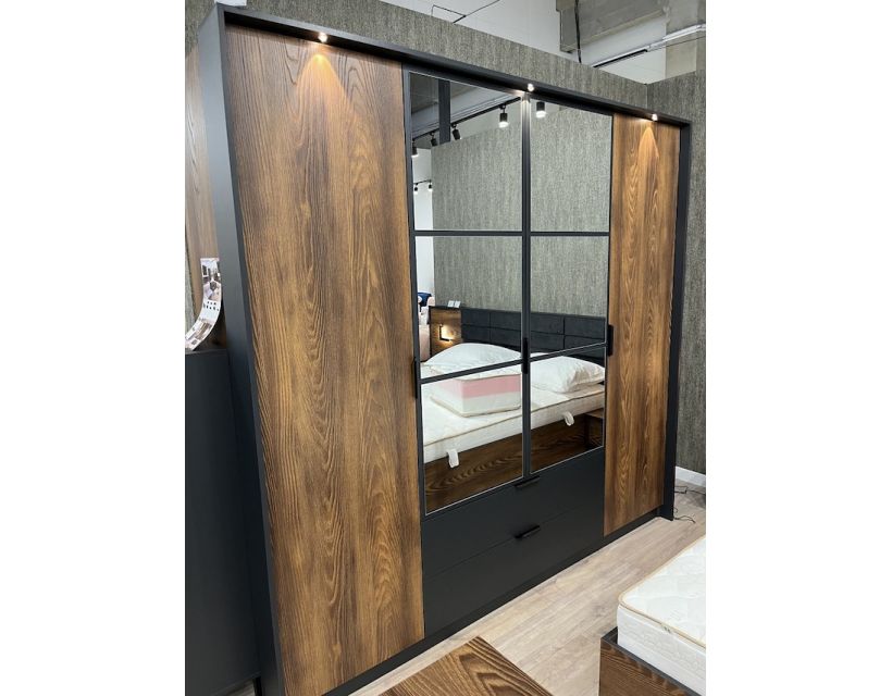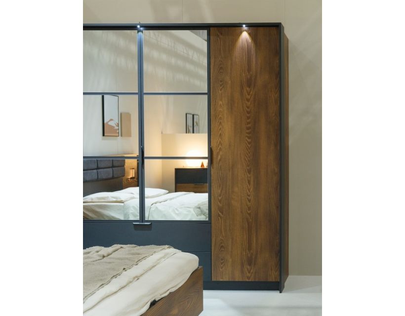 Відкрийте для себе ідеальне рішення для зберігання вашого одягу – шафа для одягу Perfect Home Мілтон. Ця 4-дверна модель із дзеркалом не тільки заощаджує простір, але надає елегантності вашій кімнаті. Виконана в стильному поєднанні каштанового та антрацитового кольорів, він стане яскравим акцентом вашого інтер'єру.