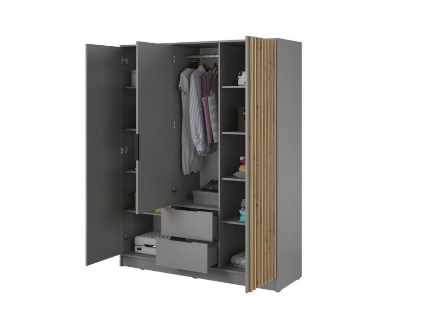 Шукаєте стильне та функціональне рішення для зберігання вашого одягу? Шафа для одягу Perfect Home Неллі 3D стане ідеальним вибором для вашого інтер'єру. Завдяки своїм трьом дверям та дзеркалу, ця шафа не тільки забезпечить достатньо місця для всіх ваших речей, але й візуально розширить простір кімнати. Її функціональний дизайн дозволяє зручно організувати одяг, взуття та аксесуари, а також легко підтримувати порядок у вашій спальні або передпокої. Замовляйте його вже сьогодні та насолоджуйтесь якістю, стилем та зручністю, яку вона привнесе у ваше життя. Створіть атмосферу комфорту та елегантності у вашому будинку з цим незамінним елементом меблів.