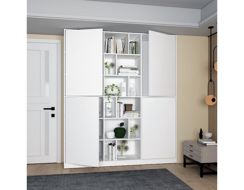 Відкриті полиці шафи Doros Морган не тільки забезпечують зручний доступ до вашого одягу, але й надають елегантності вашому житловому простору. Її сучасний дизайн у білому кольорі ідеально впишеться у будь-який інтер'єр, надаючи йому свіжості та легкості. Завдяки своїм компактним розмірам, ця шафа стане чудовим рішенням для кімнат з обмеженим простором, одночасно забезпечуючи достатньо місця для зберігання.