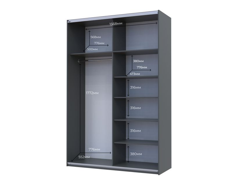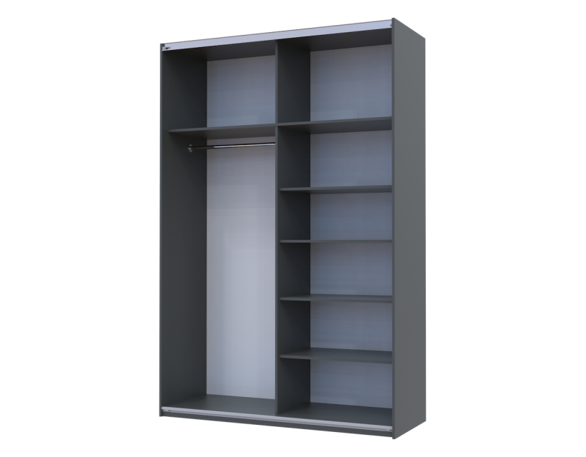 Шафа-купе дводверна Doros G-Caiser - це ідеальне поєднання елегантності та функціональності для вашого інтер'єру. Її стильний графітовий колір та дзеркала не лише надають візуальному простору, а й підкреслюють сучасний дизайн вашої кімнати. Завдяки продуманій конструкції та місткому внутрішньому простору, ви зможете з легкістю організувати свій одяг та аксесуари, зберігаючи порядок та комфорт.