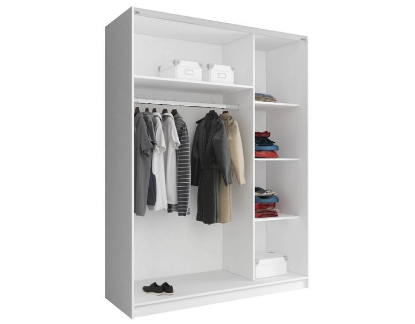 Ця 2-дверна шафа обладнана дзеркалом, що візуально розширює простір і надає світло. Просторий відсік забезпечує достатнє місце для зберігання одягу, взуття та аксесуарів. Чудова якість матеріалів та виготовлення гарантує тривалий термін служби, а також легкість у догляді.