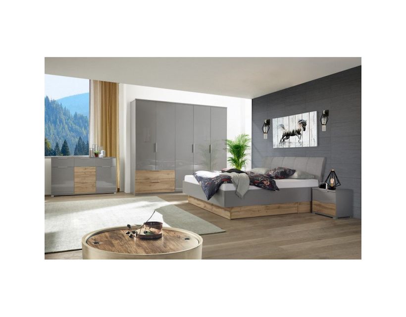 Мебель этой модульной системы идеально дополнят интерьер современного помещения. Эта модульная имеет идеальное сочетание цветов. Все элементы идеально дополняют друг друга.КомплектацияКОМОД Линц 2дв 6шх - 1 штКРОВАТЬ Линц 1,8х2,0 с ящиками - 1 штПрикроватная тумба Линц 2шх - 2 штШкаф Линц 5дв с ящиками - 1 штКорпус:Ламинированная ДСП 16ммФасад:Высокоглянцевое покрытие лакированное УФ лаками; ДСП 18мм- Цвет изделия может отличаться от того, что вы видите на экране. Это может быть связано с настройками вашего экрана.- Обратите внимание на то, что большинство мебели приезжает в разобранном состоянии! В комплект поставки входят все комплектующие и инструкция для сборки. Сборка мебели просчитывается отдельно и зависит от комплектации производителя. За дополнительной информацией обращайтесь к менеджерам магазина.Цветовая гаммасерый шифер / дуб вотанЛДСП (ламинированная древесно-стружечная плита)это шлифованная ДСП плита, покрытая стойкой миламиновой пленкой. Прочность ламинированного ДСП образуется под действием температуры, вследствие растекания смолы на поверхность плиты. Наилучшая толщина плиты ЛДСП для мебельных изделий должна быть от 10 мм до 22 мм. Пленочная оболочка ЛДСП не позволяет парам альдегида распространяться с поверхности ДСП, одновременно делает ламинированную плиту гигиенический и экологически безвредным материалом. Ламинированное ДСП применяют при изготовлении мебели для кухни и дома.