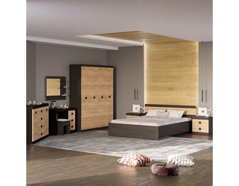 | Комплектація | З двома тумбами, З трюмо, З пуфом, З двома шафами, З комодом |