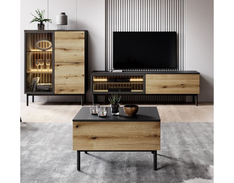 Відкрийте для себе стінку Perfect Home Ланг, яка стане ідеальним доповненням до вашого будинку. Її сучасний дизайн у поєднанні з елегантним чорним кольором та натуральним дубом евок створює унікальну атмосферу, що підкреслює ваш стиль. Ця стінка не тільки естетично приваблива, але й надзвичайно функціональна, що робить її чудовим вибором для будь-якої кімнати. Завдяки продуманій конструкції стіна пропонує достатньо простору для зберігання книг, декоративних елементів та інших важливих речей. Ви можете легко організувати свій простір, зберігаючи при цьому порядок та стиль. Насолоджуйтесь кожним моментом, проводячи час у затишному середовищі, яке створюється цією стінкою.