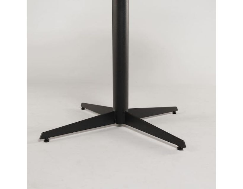 Опора столу цільносварна, виготовлена з міцної сталі та покрита порошковим методом фарбування, що забезпечує довговічність та стійкість до зносу. Габарити опори 650х650, h-725.