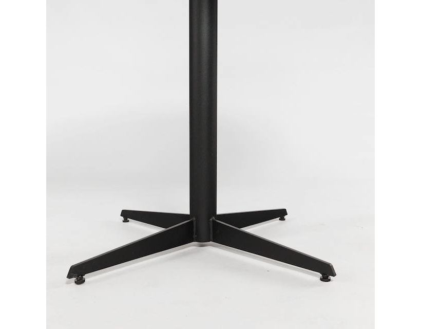 Опора столу цільносварна, виготовлена з міцної сталі та покрита порошковим методом фарбування, що забезпечує довговічність та стійкість до зносу. Габарити опори 650х650, h-725.