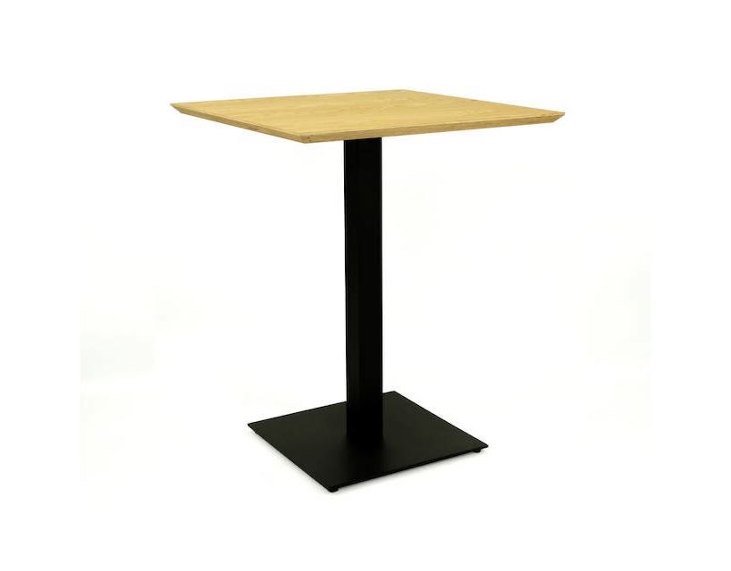 Металевий каркас столу складається із двох частин. Основа 400х400 товщиною 6 мм. І квадратна стійка з труби 60х60 мм товщиною стінки 1,5 мм. До стійки приварена пластина для кріплення стільниці. Опора столу виконується з металу з порошковим фарбуванням. Він робить стіл більш стійким до вологи та механічних пошкоджень.