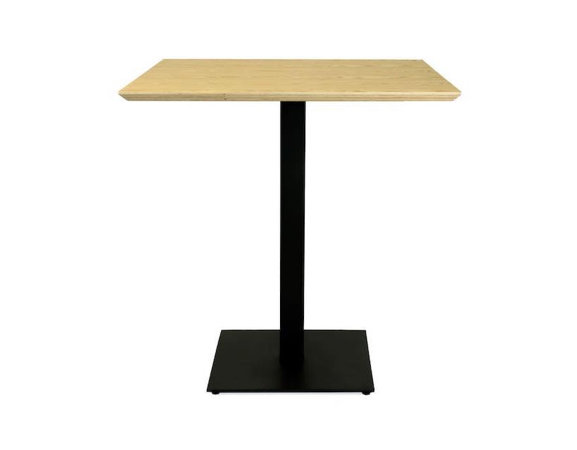 Металевий каркас столу складається із двох частин. Основа 400х400 товщиною 6 мм. І квадратна стійка з труби 60х60 мм товщиною стінки 1,5 мм. До стійки приварена пластина для кріплення стільниці. Опора столу виконується з металу з порошковим фарбуванням. Він робить стіл більш стійким до вологи та механічних пошкоджень.