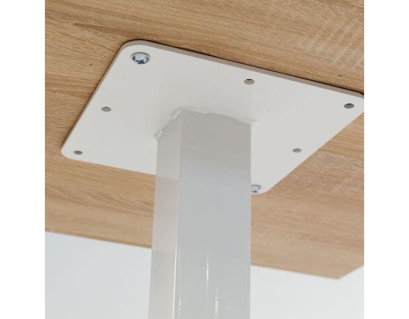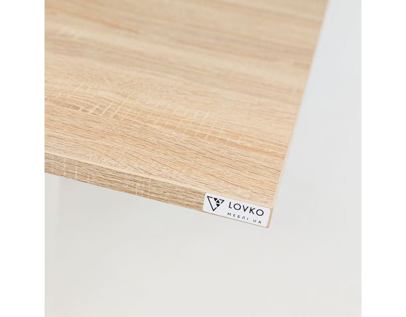 У виготовленні використовуються надійні та практичні матеріали, які мають довговічне покриття. Металева опора виконана з порошковим фарбуванням, що робить її стійкою до вологи та інших негативних впливів. Стільниця виготовляється з ламінованого ДСП товщиною 18 мм, тому має привабливий зовнішній вигляд і невибаглива в догляді.