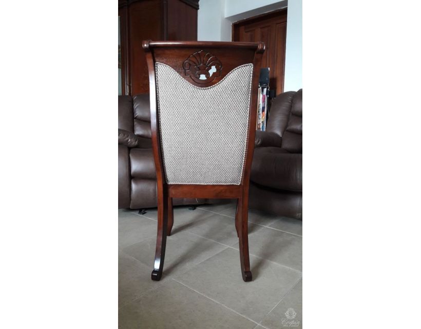 Зручний стілець Братіслава для кухні або вітальні в класичному стилі з м'яким сидінням оббитим меблевою тканиною прикрашений різьбою від виробника Софія
