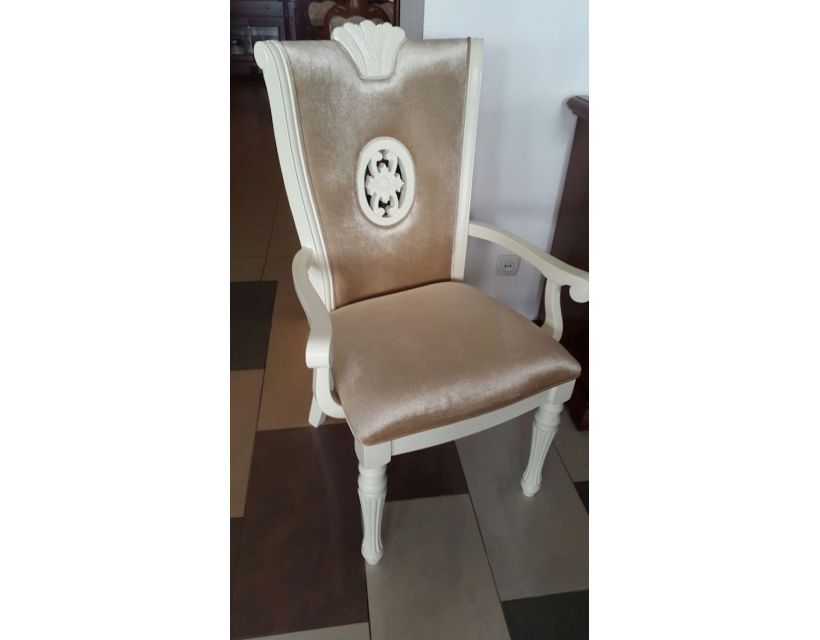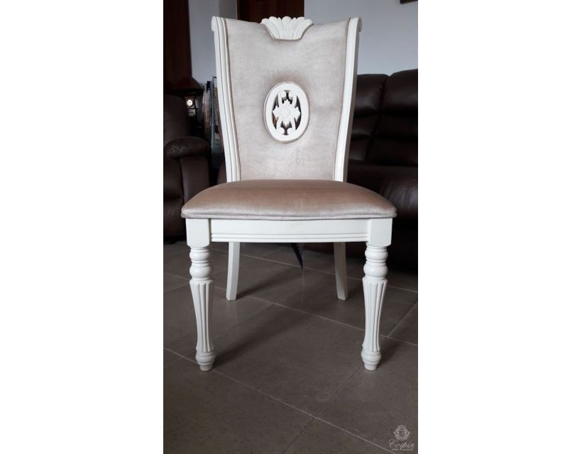 Зручний стілець Братислава для кухні або вітальні в класичному стилі з м'яким сидінням оббитим меблевою тканиною прикрашений різьбою від виробника Софія Стілець Братіслава відображає нові тенденції в меблевій моді: правильні геометричні форми, цікаві кольорові рішення. Він обов'язково стане доповненням до Вашого інтер'єру, і не тільки додасть кухні благородного і акуратного вигляду, але і зможе заощадити величезну кількість місця. Крім того, що деревина з якої виготовлений цей стілець є абсолютно натуральним та екологічним матеріалом. Виріб порадує Вас своєю практичністю, міцністю та довговічністю. Це доступне, оптимальне, багатофункціональне рішення. Стілець ідеально підійде як для оформлення власного побуту, так і для найкращих сучасних дизайнерських рішень. В основі стільця лежить надійний і міцний дерев’яний каркас, який дозволяє витримувати великі навантаження. Оббиті тканиною, м’які сидіння та спинка створюють для власників стільця неперевершені відчуття комфорту і затишку.  Особливі характеристики: Безпека (гіпоалергенність) та екологічність; Довговічність; Надійність і міцність; Неповторність і унікальність; Детальна характеристика: Габаритні розміри: глибина: 50 см ширина: 53 см висота: 104 см Матеріал корпусу: масив дерева, гевея Матеріал сидіння: меблева тканина Наявність підлокітників: ні   Колір: матовий білий Всі матеріали і фурнітура, використані в даному виробі гарантують якість і естетичну привабливість меблів протягом багатьох років. Незважаючи на те, що в наш час, купити меблі не є великою проблемою, багато покупців губляться серед великого вибору різноманітних форм і моделей. В свою чергу, інтернет-магазин Меблі Даром допоможе зробити Вам правильний вибір та придбати стілець, який підійде інтер'єру Вашої мрії!