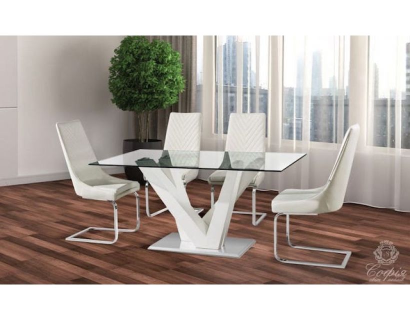 Вишуканий та зручний стілець Лоренц на металевому каркасі в кухню або вітальню в стилі модерн з м'яким сидінням оббитим екошкірою декорований простроченням від виробника Софія