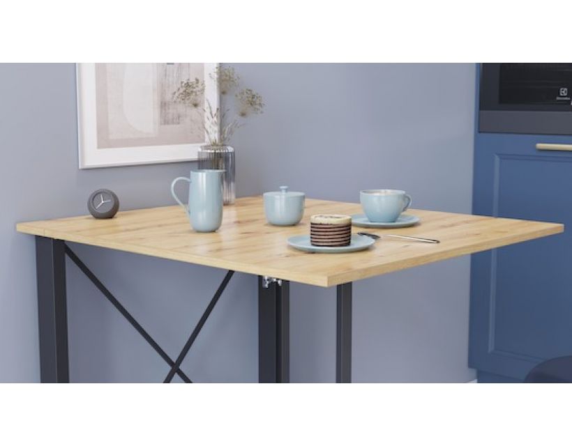 Відкрийте для себе стіл-книгу трансформер Оріон 1, що поєднує елегантний дизайн і практичність. Його витончена конструкція з чорного металу та ДСП дуба Артизан надасть стильного акценту вашому інтер'єру. Компактні розміри дозволяють легко інтегрувати його в будь-який простір, а функція, що трансформує, забезпечує комфорт під час прийому гостей або роботи вдома.