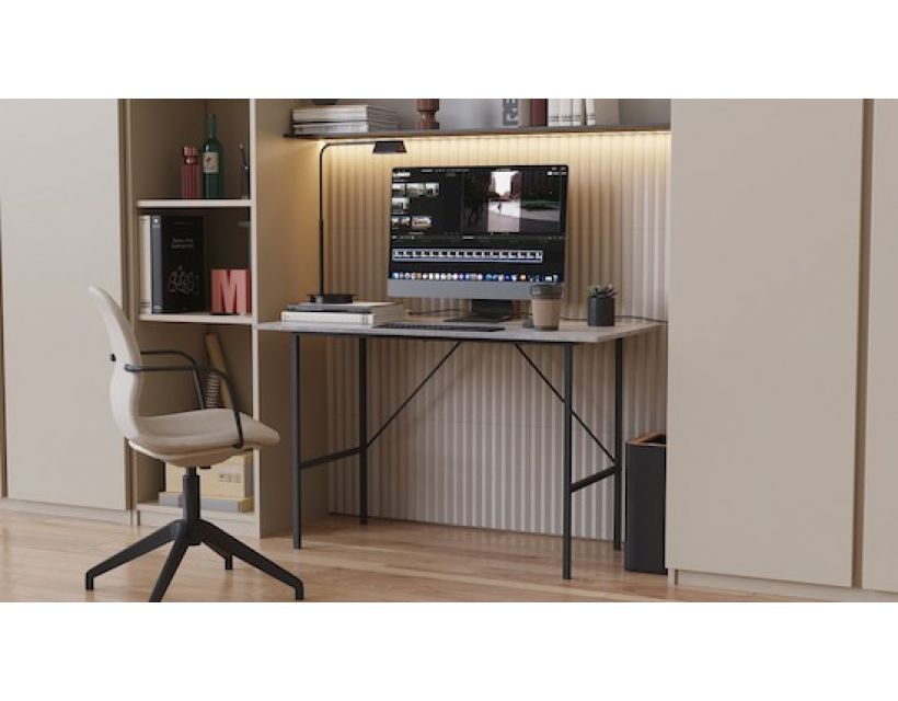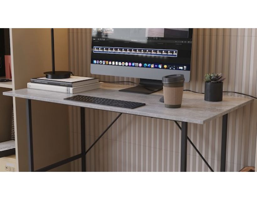 Оновіть свій робочий простір з письмовим столом TIME Тайм, який поєднує в собі сучасний дизайн та практичність. Виконаний з якісного чорного металу і ДСП з бетонним ефектом, цей стіл стане ідеальним доповненням для будь-якого інтер'єру. Його компактні розміри дозволяють легко інтегрувати його в будь-яке приміщення, забезпечуючи при цьому достатньо простору для роботи та творчості.