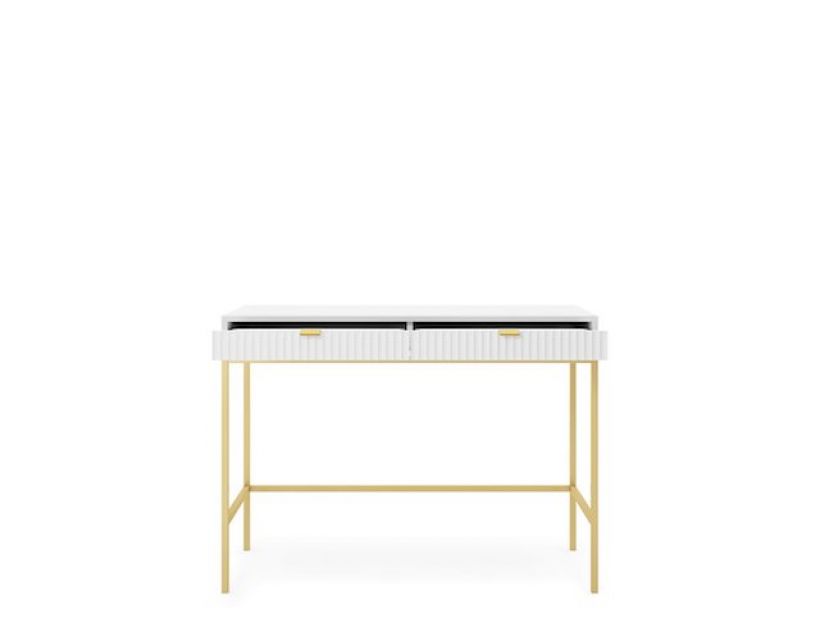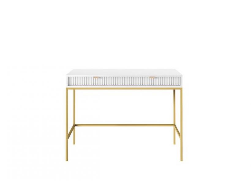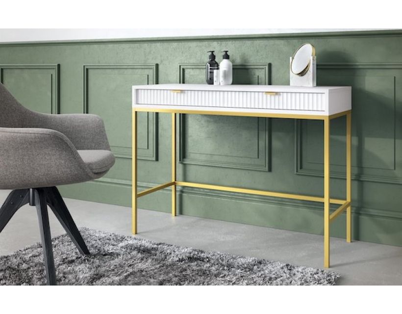 Ваша спальня заслуговує на елегантність і стиль, і туалетний стіл Perfect Home Нова стане ідеальним доповненням до вашого інтер'єру. Його сучасний дизайн з білим кольором та золотими ніжками створює враження розкоші та витонченості, що підкреслить ваш смак. Завдяки двом просторим ящикам, ви зможете зручно зберігати косметику та аксесуари, зберігаючи порядок у вашому просторі.