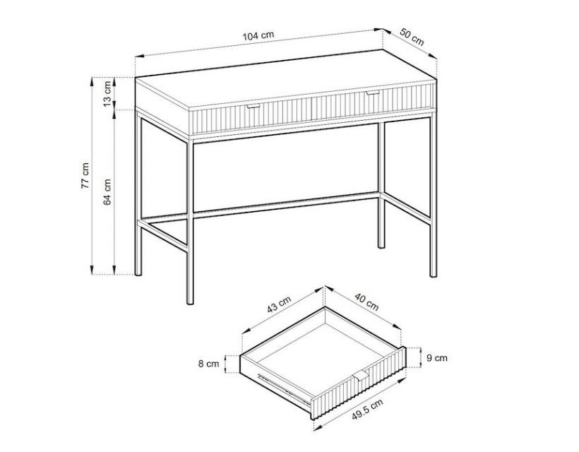 Два просторі ящики дозволяють організувати простір, зберігаючи всі необхідні речі під рукою. Ви більше не шукатимете улюблені косметичні засоби та аксесуари в хаосі – все має своє місце! А стильний дизайн столу стане акцентом вашого інтер'єру, наголошуючи на гарному смаку.