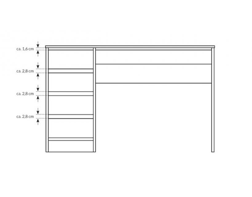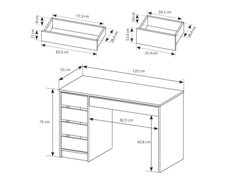 Завдяки п'яти просторим ящикам, ви зможете з легкістю організувати свій простір та зберігати всі необхідні речі під рукою. Незалежно від того, чи використовуєте ви стіл для письма, роботи за комп'ютером чи для творчості, він надасть вам максимальний комфорт та зручність. Ви більше не витрачатимете час на пошуки потрібних канцелярських приладів або особистих речей.