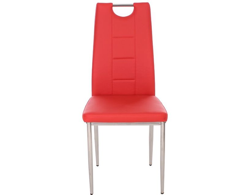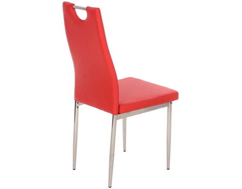 М'який стілець N-67 червоний - цікаве поєднання сучасного дизайну і позачасовий меблевої класики. Особлива ергономічна спинка стільця з елементами рядки і хромованою блискучою базою чудово впишеться як в сучасний, так і в класичний інтер'єр.