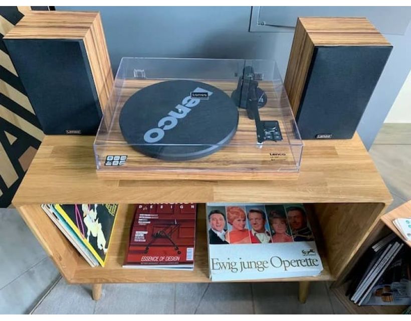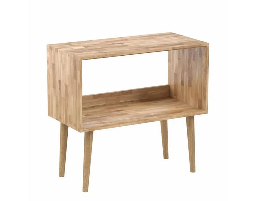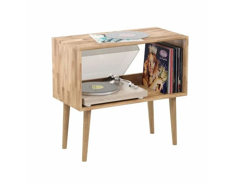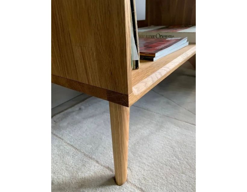 Модель має одну містку полицю, яка ідеально підходить для зберігання аудіоапаратури або вінілових платівок. Стійкі дерев’яні ніжки додають конструкції витонченості та підкреслюють сучасний мінімалістичний стиль.