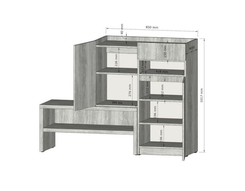 Тумба оснащена місткими відділеннями, які дозволяють акуратно зберігати взуття, захищаючи його від пилу та пошкоджень. Компактні розміри роблять її ідеальною навіть для невеликих передпокоїв.