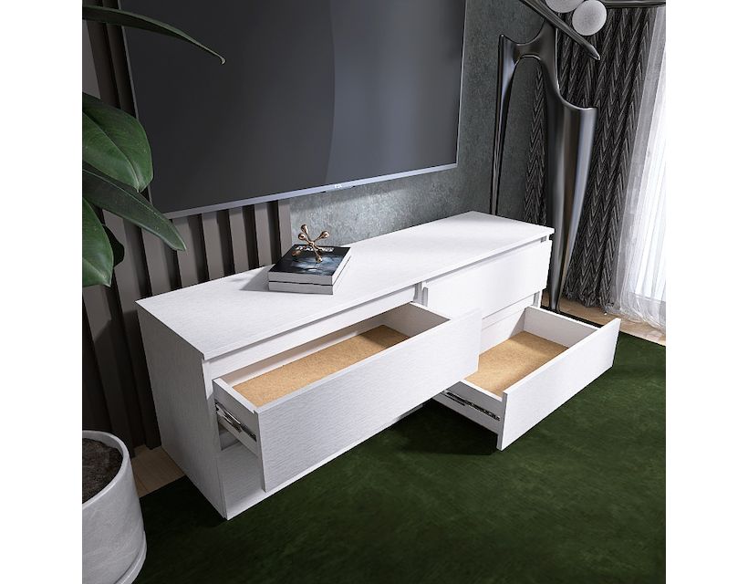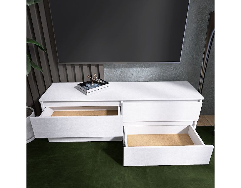 Тумба під телевізор Еверест ЛТВ-1400 Лайт Німфея Альба Тумба під телевізор Еверест ЛТВ-1400 Лайт - це елегантне та функціональне рішення для вашої вітальні чи спальні. Ця тумба надає стильне та практичне місце для розміщення телевізора та інших мультимедійних пристроїв, а також для зберігання різноманітних предметів. Тумба обладнана чотирма висувними ящиками, кожна з яких встановлюється на телескопічні напрямні. Це забезпечує легкість і плавність висування ящиків, що робить доступ до речей більш зручним. Конструкція тумби забезпечує стабільність та надійність при розміщенні на ній телевізора та інших пристроїв. Габарити тумби Лайт: Ширина - 140 см Глибина - 38 см Висота - 49 см Матеріал виготовлення: Матеріал кромки каркасу - ПВХ Матеріал каркасу - ЛДСП Матеріал фасаду - ЛДСП Матеріал кромки фасаду - ПВХ