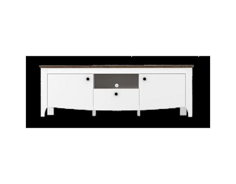 Тумба під телевізор Гербор Каріна RTV2D1S Німфея альба/Дуб сонома трюфель Тумба Каріна RTV2D1S від відомого українського бренду Gerbor – це стильна та функціональна модель, яка ідеально впишеться у сучасний інтер'єр. Виріб виконаний у поєднанні кольорів "Німфея альба" та "Дуб сонома трюфель", що надає йому особливого шарму і гармонійно виглядає в різних колірних рішеннях приміщення. Характеристики: Довжина – 150 см; Глибина – 45 см; Висота - 50 см. Тумба під телевізор має досить великі габаритні розміри, що дозволяє зручно розмістити будь-яку аудіо-відео апаратуру, а також дрібні предмети інтер'єру, книги, журнали та інше. До складу тумби входить одна висувна скринька та два відділення, закриті дверцятами. Це дозволяє урізноманітнити зберігання речей і робить використання тумби ще зручнішим. Каркас та фасади виробу виготовлені з якісного ДСП, що гарантує міцність та довговічність конструкції.