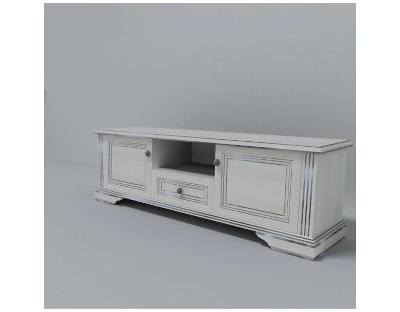 Тумба під телевізор Гербор Вайт RTV160 Ясен сніжний/Сосна срібна Тумба під телевізор Вайт RTV160 від українського виробника Гербор виконана в стильному та універсальному дизайні. Вона ідеально вписується в сучасні інтер'єри завдяки своїй простоті та функціональності. Основний колір тумби - Ясен сніжний, доповнений акцентами сріблястої сосни. Це поєднання чудово підкреслить естетику вашої вітальні і надасть свіжості загальному виду приміщення. Тумба має довжину 160 см, що дозволить розмістити на ній телевізор широкого формату. Глибина складає 45 см, а висота – 53 см. Меблева фурнітура телескопічного типу забезпечує повне висунення ящиків, посилюючи її зручність використання. Основні матеріали виготовлення – високоякісне ДСП та МДФ. Завдяки такій якості матеріалів тумба служитиме вам протягом багатьох років. Тумба оснащена однією відкритою полицею для розміщення різних предметів. Також є 1 висувна скринька для зберігання різних дрібниць. Також є 2 дверцята, за якими можна сховати все необхідне.