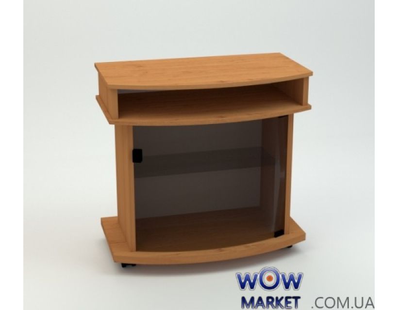 Тумбочка среднего объема для телевизора. Делается с ровненькой либо гнутой стеклянной дверцей. Снутри находиться стеклянная полка. Раскрытую полку позволительно применять для CD/DVD проигрователя либо видемагнитофона. Для упрощенного движения обеспечена роликовыми опорами. Делается из ламинированного ДСП. Широкая цветовая палитра.