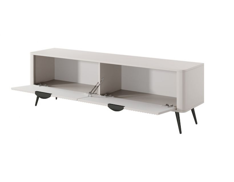 Тумба обладнана двома зручними дверцятами, що дозволяють зберігати вашу електроніку та аксесуари в порядку. Чорні ніжки надають стійкості та надають меблям вишуканого вигляду. Не тільки практична, а й естетична, ця тумба стане акцентом вашої вітальні, створюючи затишну атмосферу для перегляду улюблених фільмів та серіалів.