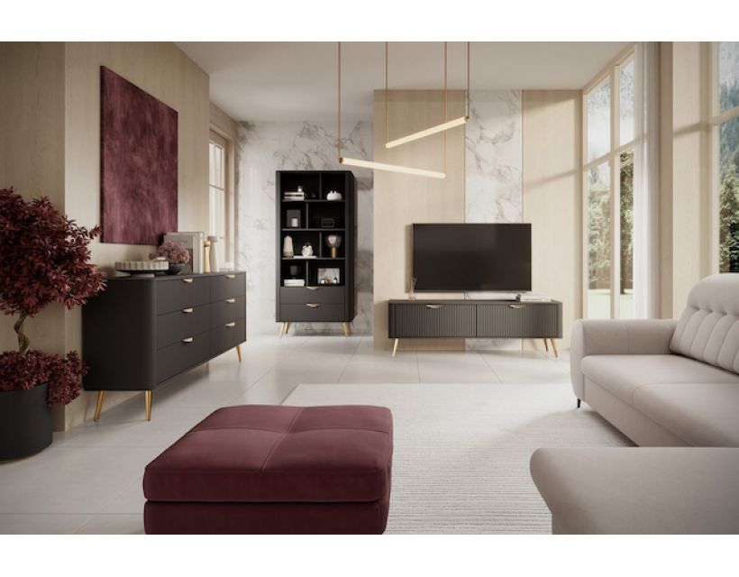 Створіть стильний акцент у вашій вітальні з тумбою під телевізор Perfect Home Ланте. Її елегантний чорний колір у поєднанні із золотими ніжками надає виробу розкішного вигляду, що підходить для будь-якого сучасного інтер'єру. Завдяки своїм компактним розмірам, ця тумба легко впишеться навіть у невелику кімнату, не займаючи багато місця. Ви можете легко організувати простір та підтримувати порядок, а також мати під рукою все необхідне для комфортного перегляду улюблених фільмів та серіалів. Висока якість матеріалів та виготовлення гарантує довговічність та надійність виробу.