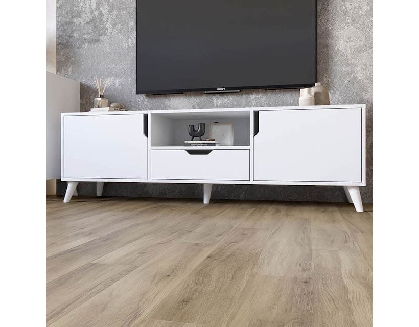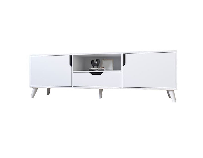 Тумба під телевізор із білими ніжками М-ЗОН Борн 1600 Німфея Альба (білий) (MZN-031099)