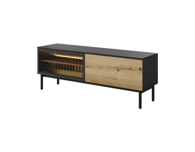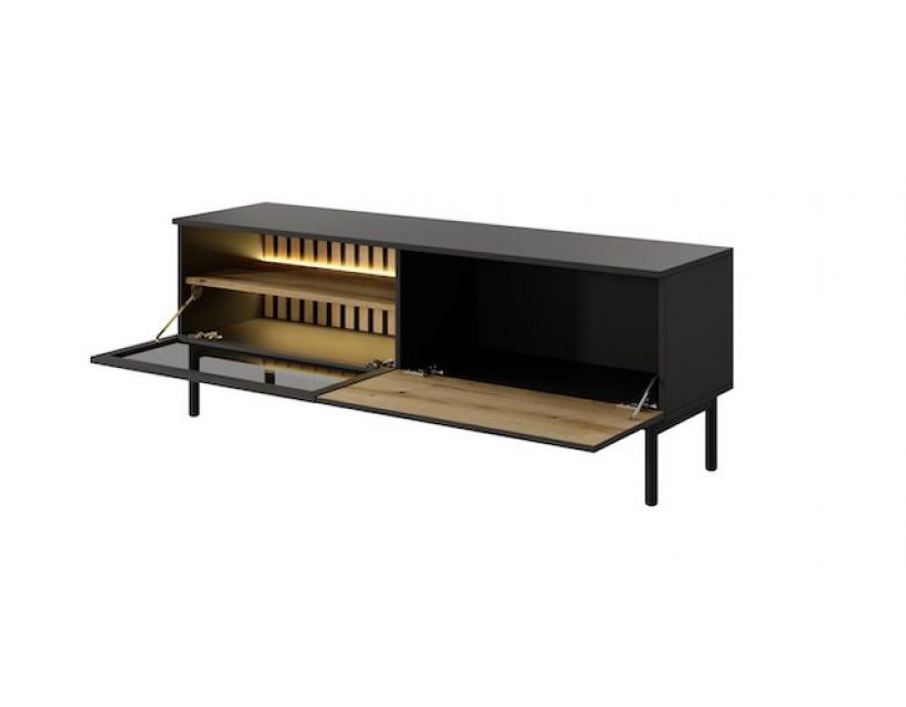 Особенностью этой модели является встроенная подсветка, которая создает атмосферу уюта и элегантности. Вы сможете легко настроить под свои настроения или обстоятельства, подчеркивая красоту вашего пространства. Две функциональные дверцы предоставляют возможность хранить разнообразные аксессуары, технику или медиа-коллекцию в порядке, сохраняя при этом стильный внешний вид.