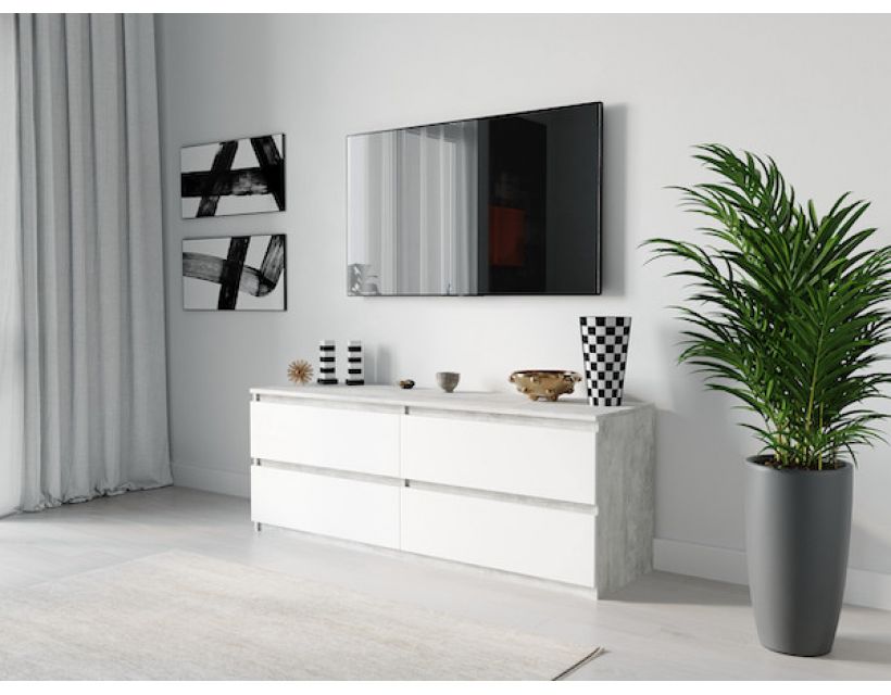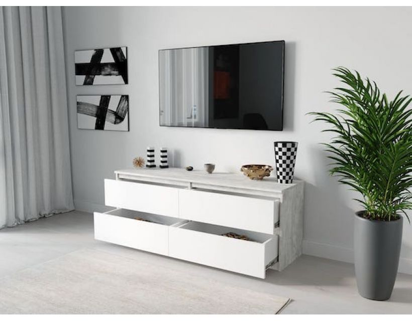 Тумба під телевізор ТВ/ТВ 4 ящики Moreli (Морелі) Т-223 Бетон/Білий