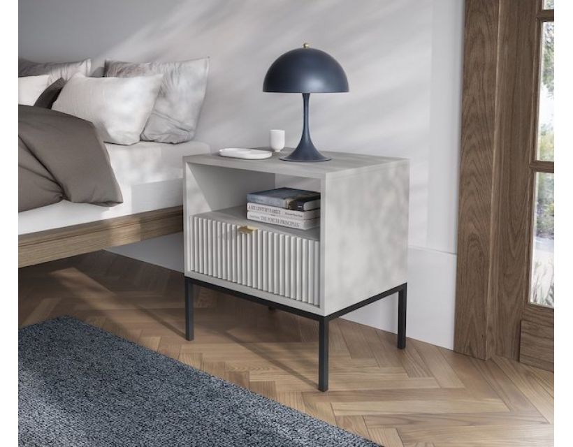 Шукаєте стильний та функціональний елемент для вашої спальні? Тумба для ліжка Perfect Home Нова/Nova стане ідеальним рішенням для вашого інтер'єру. Її сучасний дизайн у сірому кольорі легко впишеться в будь-який стиль, додаючи елегантності та затишку вашій кімнаті. Завдяки одній зручній скриньці, ви зможете зберігати всі необхідні речі під рукою. Чорні ніжки надають тумбі візуальної легкості та стабільності, а якісні матеріали гарантують довговічність. Ви більше не турбуватиметеся про безладдя – тепер все має своє місце!
