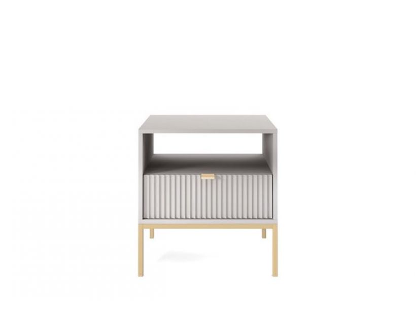 Шукаєте ідеальний аксесуар для вашої спальні? Тумба нічна Perfect Home Нова/Nova стане яскравим акцентом у вашому інтер'єрі. Її стильний сірий колір і елегантні золоті ніжки надають сучасному вигляду, що ідеально поєднується з будь-яким дизайном кімнати. Ця тумба не тільки естетично приваблива, але й функціональна. Оснащений одним ящиком, він забезпечить вам достатньо місця для зберігання книг, аксесуарів або інших дрібниць, які завжди мають бути під рукою. Завдяки продуманому дизайну, ви зможете підтримувати лад у вашій спальні без зусиль.