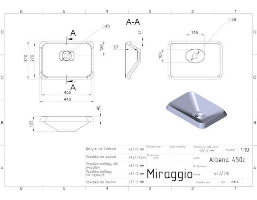 | Діаметр зливного отвору, мм | 45 |