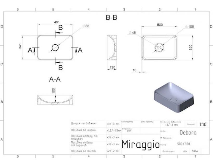 | Комплектація | Умивальник, декоративна накладка на зливне отвір, документація |