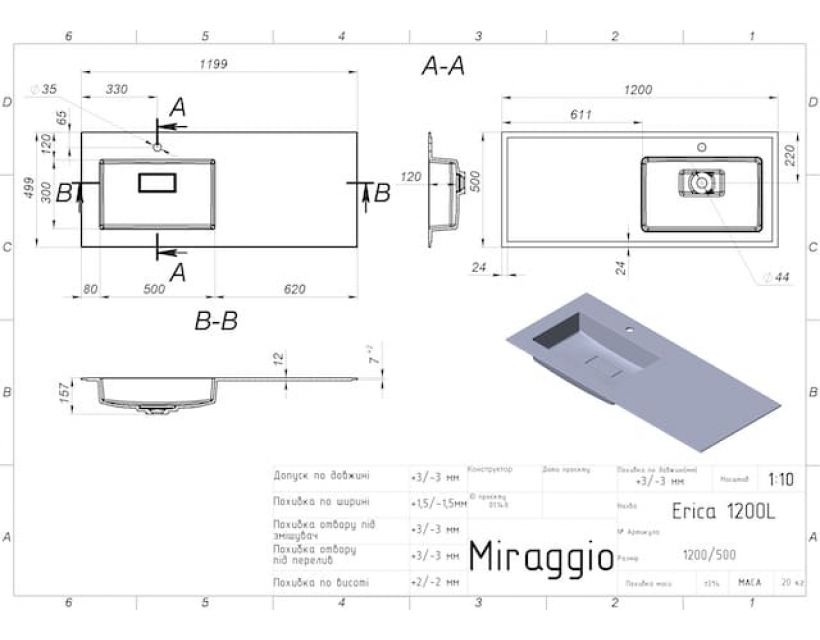 | Глибина чаші, мм | 120 |