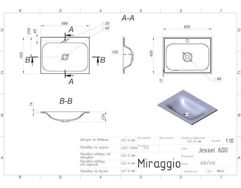 | Глибина чаші, мм | 100 |