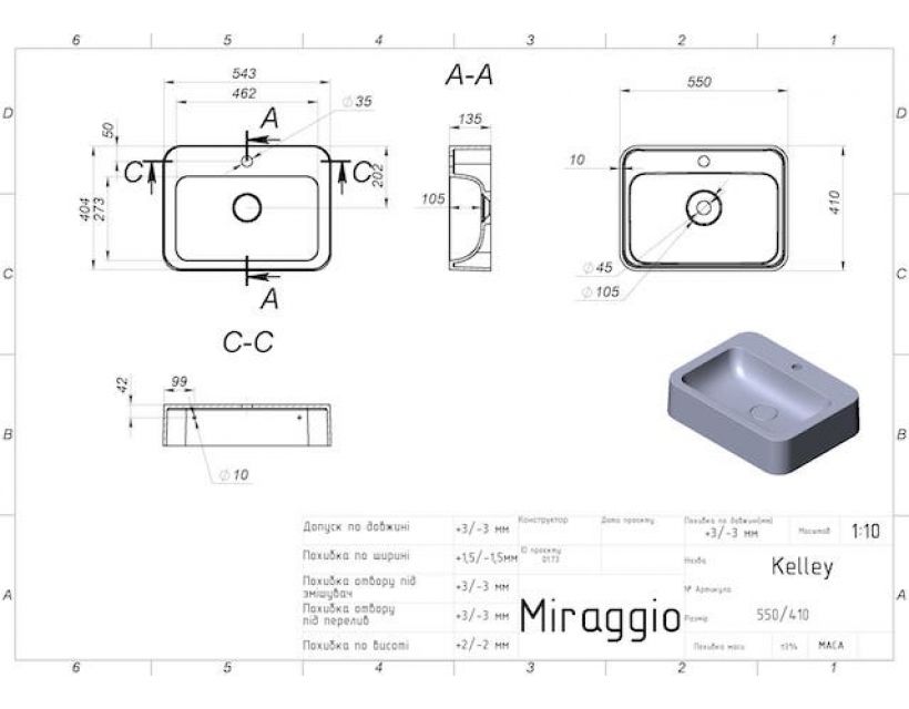 | Глибина чаші, мм | 105 |