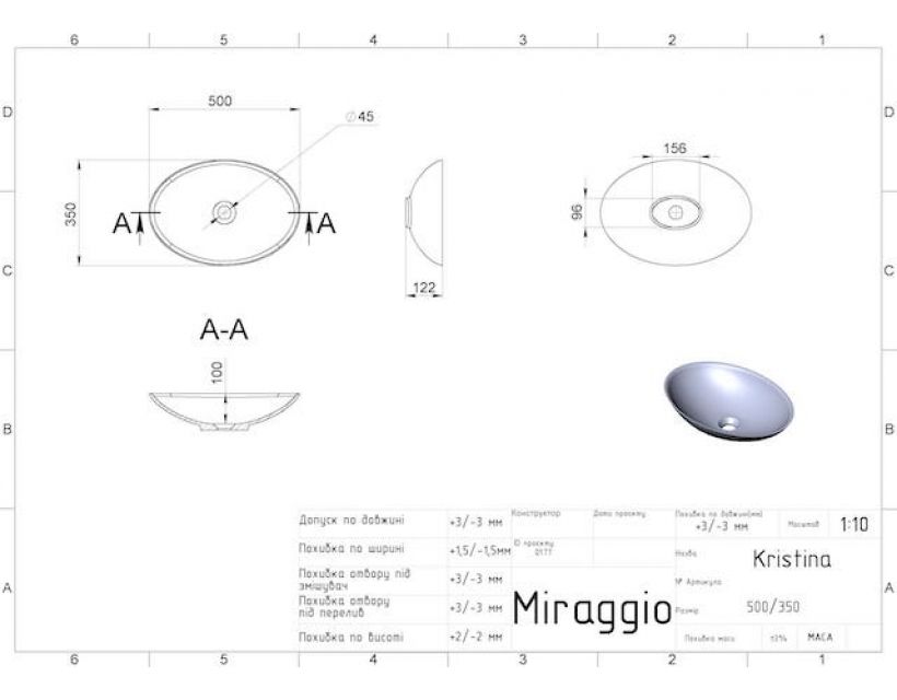 | Глибина чаші, мм | 100 |