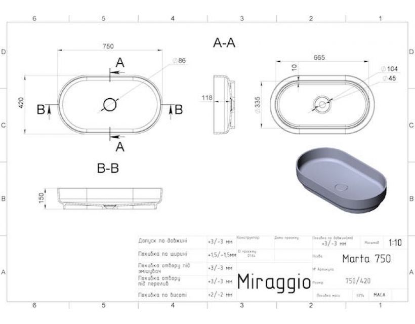 | Комплектація | Умивальник, декоративна накладка на зливне отвір, документація |